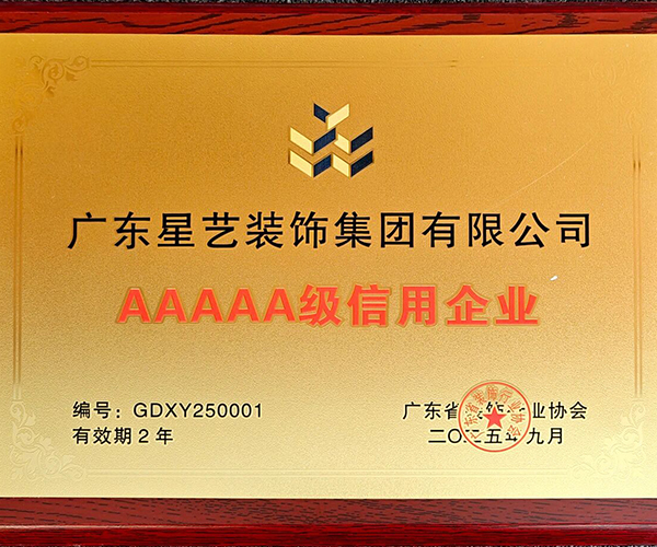 星艺装饰——广东省装饰行业AAAAA级信用企业